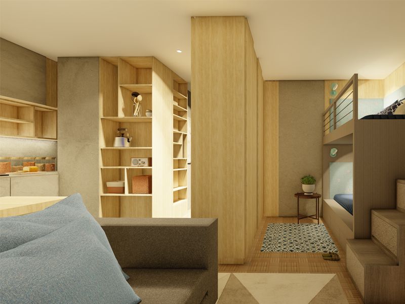 A partir de um estudo desenvolvido pela nossa equipa de arquitectura a pedido da área imobiliária da umseisum para reorganização espacial de um T0 para um potencial comprador (e que pode descobrir aqui), a umseisum produziu em 3D, uma planta do imóvel e imagens interiores da solução proposta.